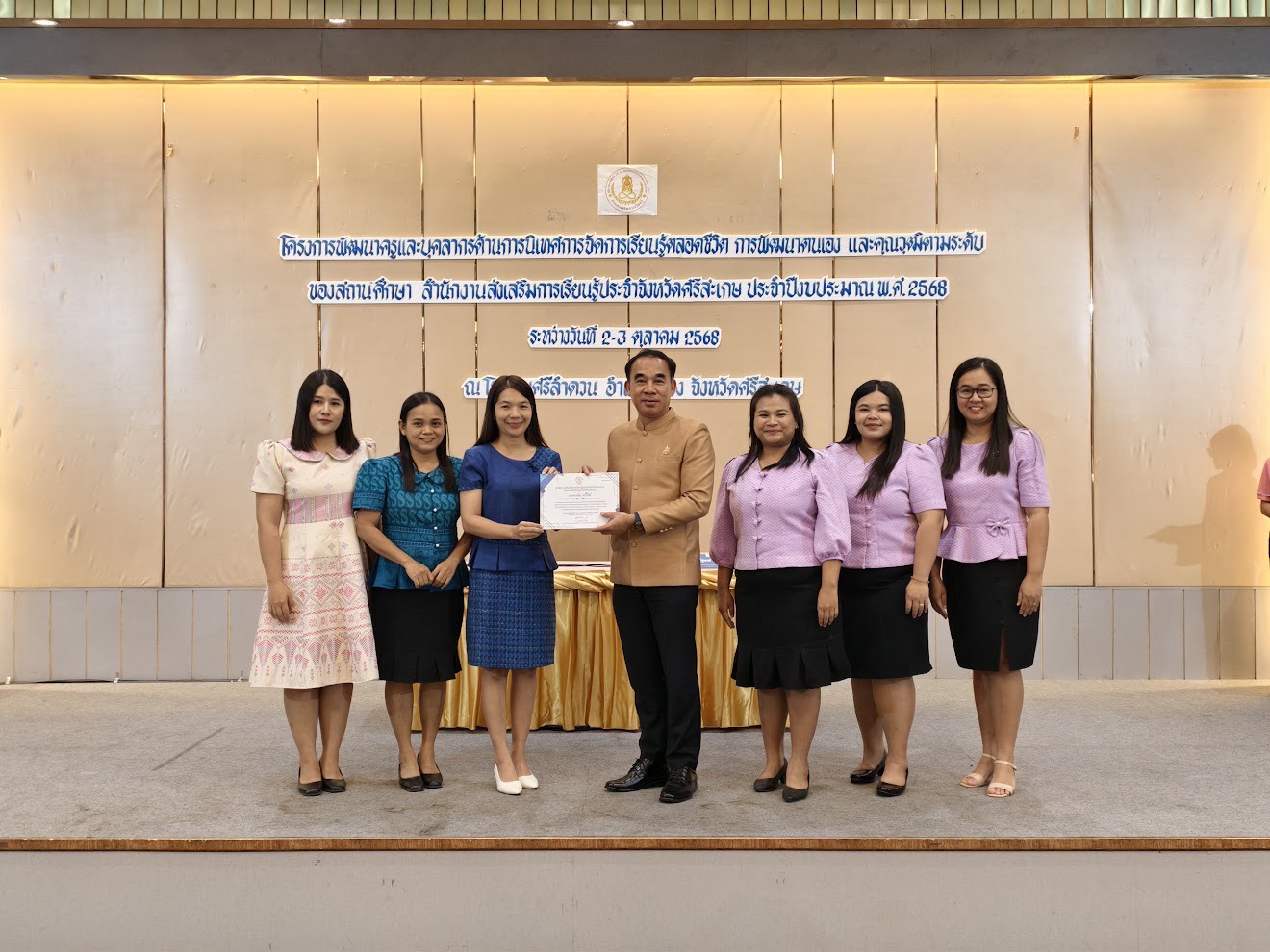 วันที่ 2-3 ตุลาคม 2568 นางวาสนา ชารีวัน ผู้อำนวยการ สกร.ระดับอำเภอกันทรลักษ์ พร้อมด้วยบุคลากร สกร.ระดับอำเภอกันทรลักษ์ ร่วมโครงการพัฒนาครูและบุคลากรด้านการนิเทศ การจัดการเรียนรู้ตลอดชีวิต การพัฒนาตนเองและคุณวุฒิตามระดับ ของสถานศึกษา สำนักงาน สกร.ประจำจังหวัดศรีสะเกษ ประจำปีงบประมาณ พ.ศ.2568 โดยมี นายณัฐพงษ์ ทองหล่อ ผู้อำนวยการสำนักงาน สกร.ประจำจังหวัดศรีสะเกษ เป็นประธานในพิธี ณ โรงแรมศรีลำดวน อำเภอเมืองศรีสะเกษ จังหวัดศรีสะเกษ